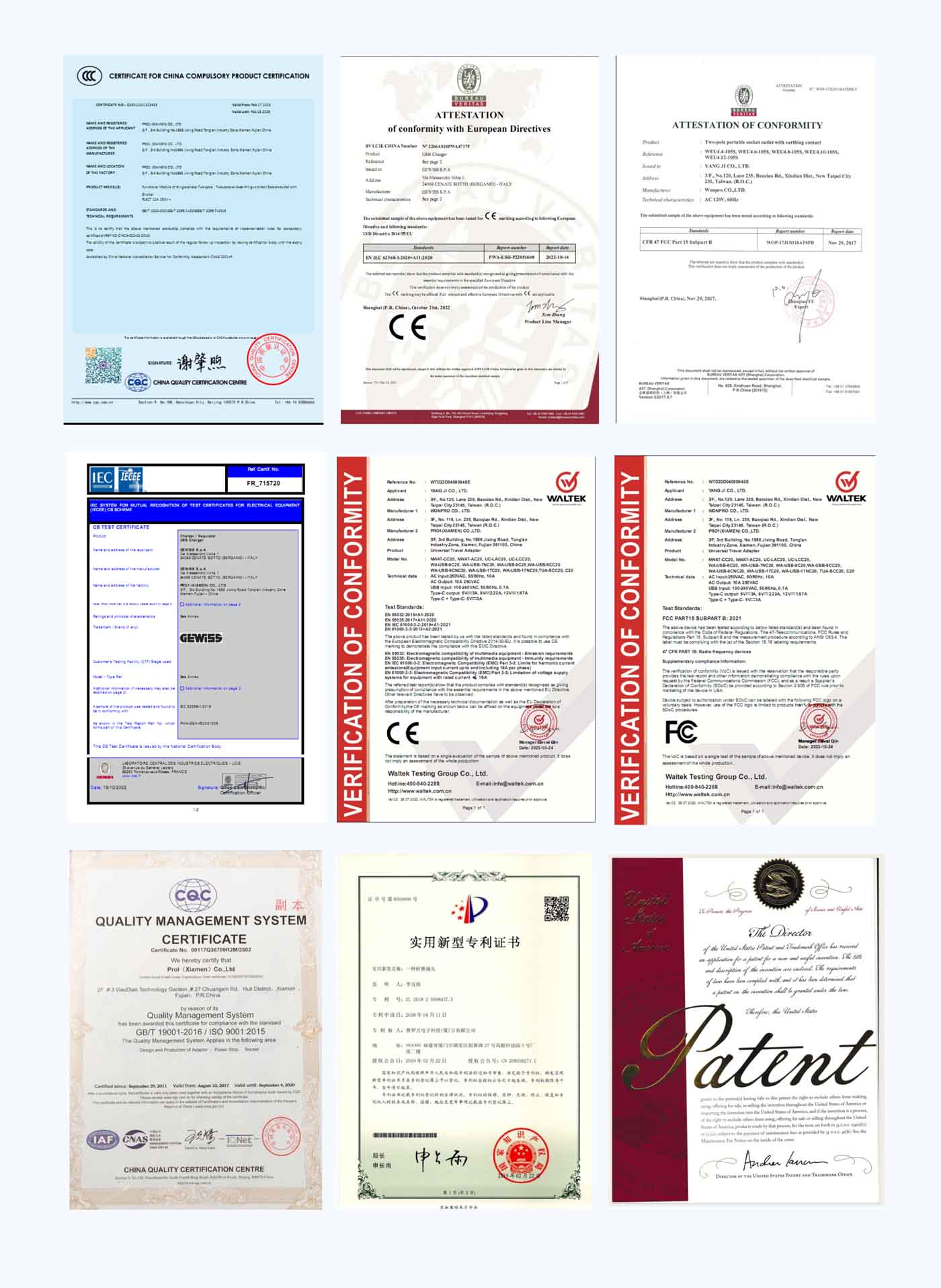 WONPROトラベルアダプターは、国際的な認証フレームワークに基づいて構築されており、権威ある承認により、世界中の旅行者の電気安全を強化しています。国際特許制度の利便性を活用し、当社の製品は複数の国家特許認証を取得しており、技術革新の世界的な保護と認知を実現し、世界の主要市場における中核的な発明に対する法的保護を確保しています(中国知的財産保護ネットワーク)。